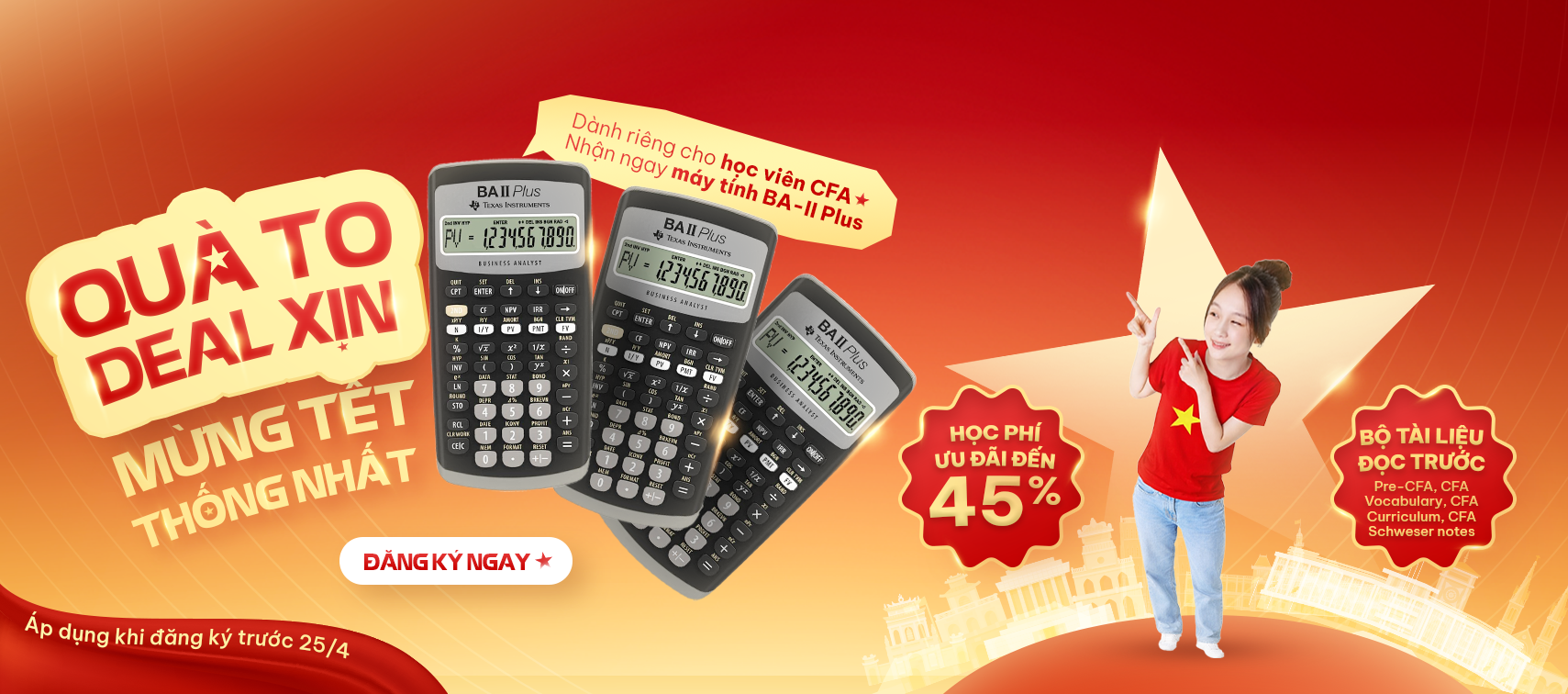 Chương trình chỉ áp dụng cho 15 suất đăng ký sớm nhất! Đây không chỉ là một chương trình ưu đãi nhân dịp 8/3, mà là cơ hội để mỗi học viên chủ động tạo ra bước tiến mới cho sự nghiệp của mình - bắt đầu từ một quyết định đầu tư đúng thời điểm.