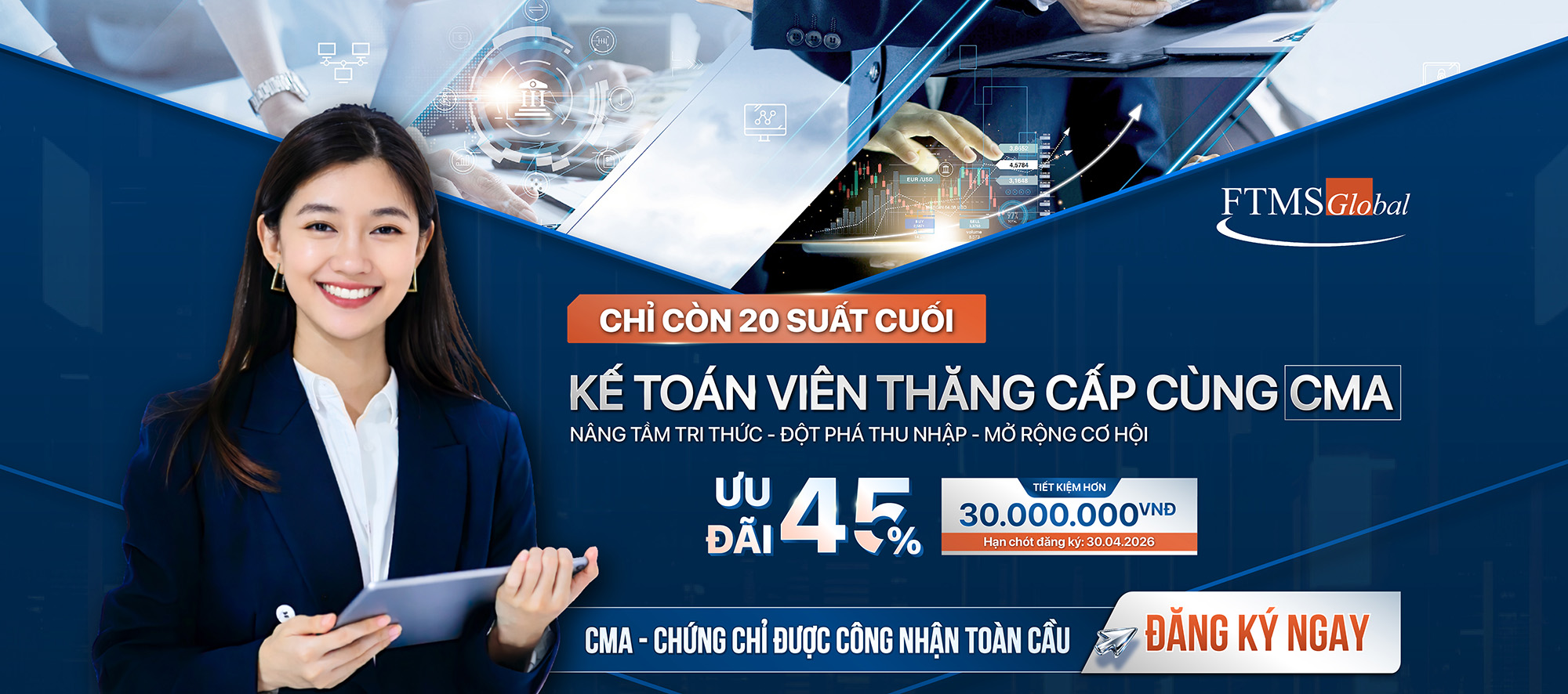 Nhân dịp Ngày Quốc tế Phụ nữ 8/3, thời điểm tôn vinh những người phụ nữ không ngừng nỗ lực và khẳng định giá trị bản thân, việc đầu tư vào tri thức và năng lực chuyên môn chính là món quà ý nghĩa và bền vững nhất dành cho chính mình. FTMS Global triển khai chương trình ưu đãi đặc biệt dành cho học viên đăng ký các chương trình đào tạo chứng chỉ quốc tế.