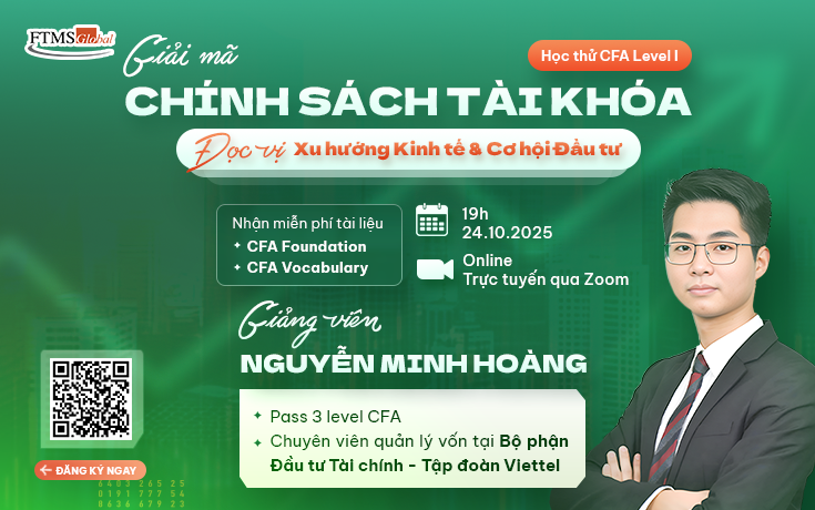 FTMS Global — Đơn vị đào tạo các chứng chỉ tài chính quốc tế tại Việt Nam. Tham gia buổi học thử này để mở rộng góc nhìn vĩ mô, nâng tầm tư duy phân tích và chuẩn bị hành trang cho con đường chuyên nghiệp trong lĩnh vực tài chính - đầu tư.
